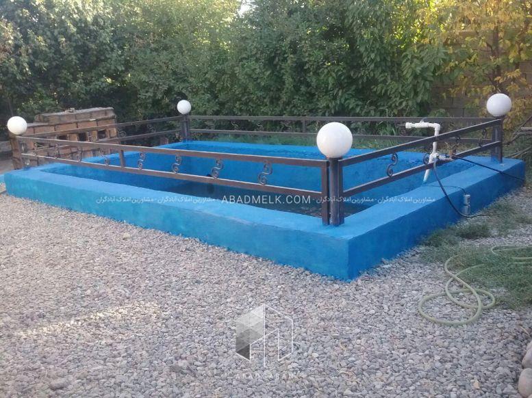 1100متر باغ با درختان میوه 100متر ویلایی دو خوابه 24 متر استخر شنا ، محوطه سازی شده انشعابات آب ، برق و گاز شهری در مجموعه ویلایی با کوچه اختصاصی قابلیت سکونت دائم قیمت به شرط ( زیر قیمت منطقه )