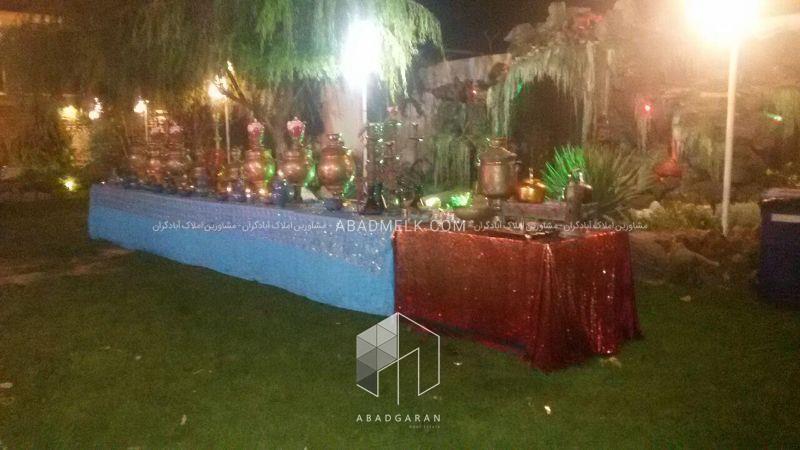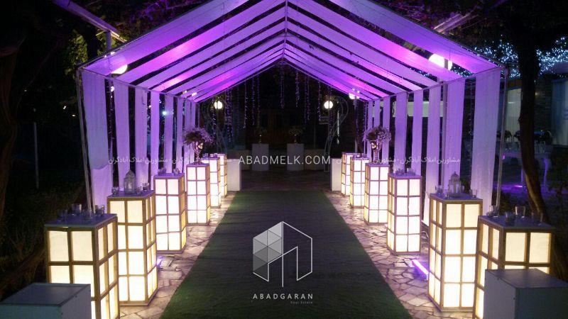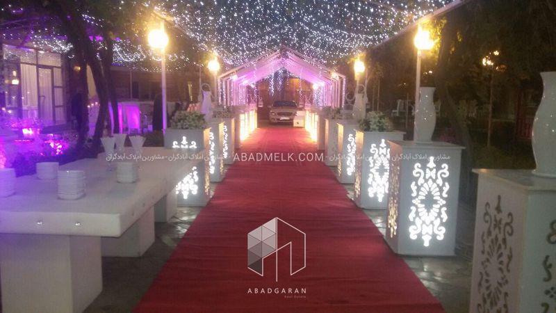 زمین 2500 مترمربع چهاردیواری دوسالن مجزا یکی500 مترمربع بعنوان کارگاه وانباری با یک دستگاه کولر آبی 7000 با ارتفاع 4متر بدون ستون وسرویس بهداشتی وحمام و 600 مترسالن تالار شیک با ارتفاع 5/5 مترمربع یک دست بدون ستون ، پنجره های بلند ودوجداره .دارای سه دستگاه کولر آبی 7000 استیج موزیک سرویس بهداشتی ایرانی وفرنگی بانوان وآقایون کاملا جدا ، رخت کن خانم ها ونمازخانه آقایون کاملا جدا ودارای آبگرمکن به همراه زیرسنگی دولگن شیک و سیستم برق کنترلی 60 مترمربع آشپزخانه کاملا بهداشتی و سرویس بهداشتی وحمام جدا گانه برای پرسنل 80 مترمربع سالن میز شام با پنجره های قدی زیبا ودوجداره اتاق عقد 150 مترمربع با 100 متر مربع بالکن اختصاصی ، دارای آبدارخانه آبگرمکن جدا و یک دستگاه کولر آبی 7000 و شومینه سنگی زیبا 100 مترمربع دفتر اداری با آبدارخانه ، اتاق منشی و مدیریت و کارمند ، کولر آبی 7000 و کولر گازی اتاق مدیریت ، آیفون تصویری درب ریموت کنترل ، شومینه 5 خط تلفن و سیستم سانترال آمپلی فایر و باند کشی در کل محوطه وسالن ها 100 مترمربع ویلا دوخوابه آشپزخانه کابینت کمد دیواری هر اتاق جدا سرویس بهداشتی وحمام آیفون تصویری ، کولر گازی وآبی ، کف سرامیک درب وپنحره های دوجداره سکوی بزرگ جلو ویلا کل فضا چمن کاری ، درختان میوه ، آبنمای بزرگ بتونی ، آلاچیق چوبی ، استخر ، حوض ، چاه آب و منبع هوایی مناسب قهوه خانه سنتی و30 متر مربع انباری جدا گانه به همراه میز و صندلی سنتی بتونی ، سیستم آبیاری کاملا اتومات فواره سه انشعاب برق سه فاز 25 آمپر صنعتی وسایر مصارف دو انشعاب آب شهری ، صنعتی و مسکونی دوانشعاب گاز شهری صنعتی و مسکونی دارای 16کانال دوربین مداربسته در سالن ها محوطه به همراه DVR رایتر دار و فلش خور دارای ژنراتور برق 25 آمپر سه فاز هندا اصل ژاپن و متصل به کل محوطه و سالن ها ، ویلا و دفتر نورپردازی کل محوطه ورودی درب های ورودی چوبی ، کلیه نمای داخلی سنگ آنتیک ( در ضمن رهن و اجاره ذکر شده فقط برای تالار می باشد )
