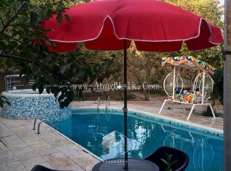 1500 متر باغ با انواع درختان میوه مثمر 80 متر ویلا ، یک خوابه مبله و کابینت شده آلاچیق ، استخرشنای آبگرم