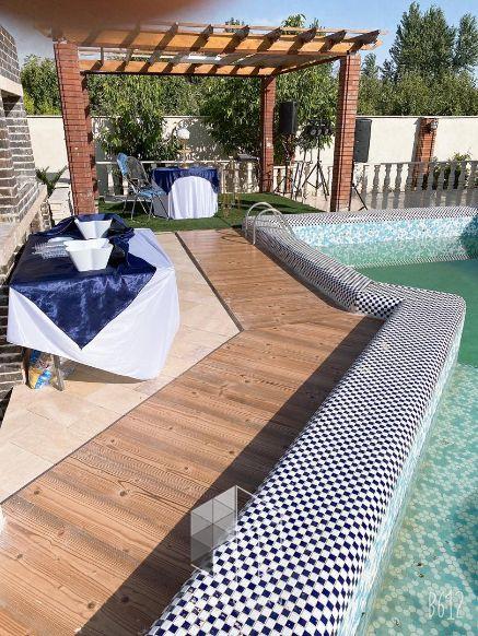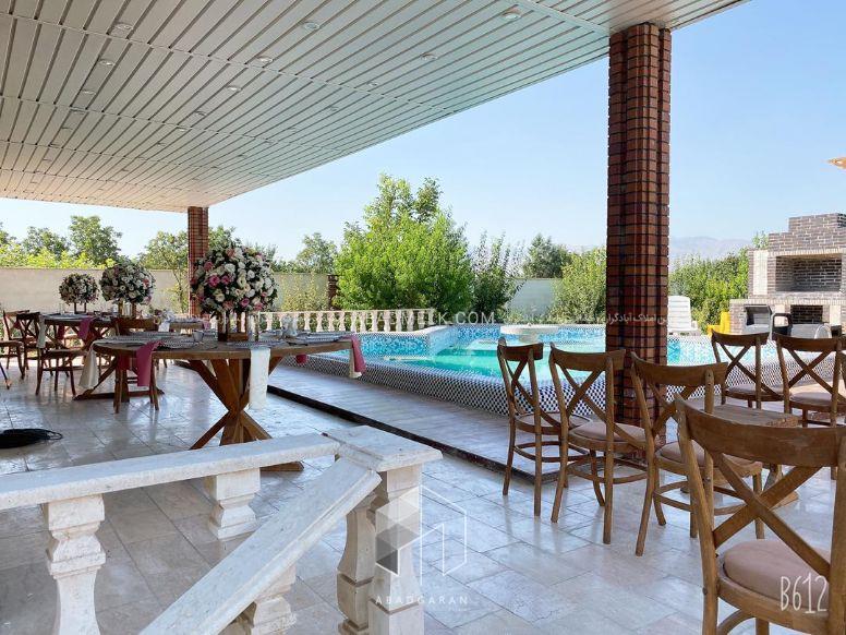 2000 متر باغ با انواع درختان میوه مثمر 130 متر ویلا ، دو خوابه مبله و کابینت شده با تمام وسایل محوطه سازی ، گل کاری ، چمن کاری و نورپردازی آلاچیق ، باربیکیو استخرشنا مجهز به تصفیه خانه مناسب برای مراسم،نامزدی و تولد اجاره روزانه آخر هفته = 5 میلیون