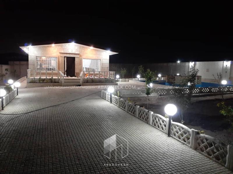 چهار دیواری ارتفاع ۵ متر کامل سنگ فرش با ۲۰۰ درخت ۳تا ۱۵ ساله ابیاری قطره ای ۹۰ متر بنا تک خواب اشپز خانه کابینت کف پارکت مبله ویدو پروژکشن تراس ۴۰ پکیج شومینه انباری قفس پرندگان باغچه بزرگ سبزی جات متور برق استخر بزرگ زیبا با الاچق جای متورخانه