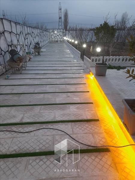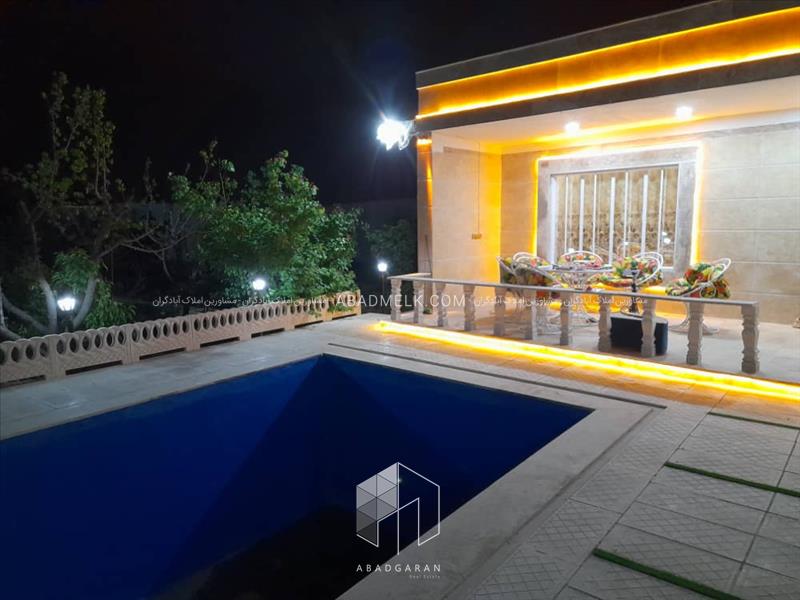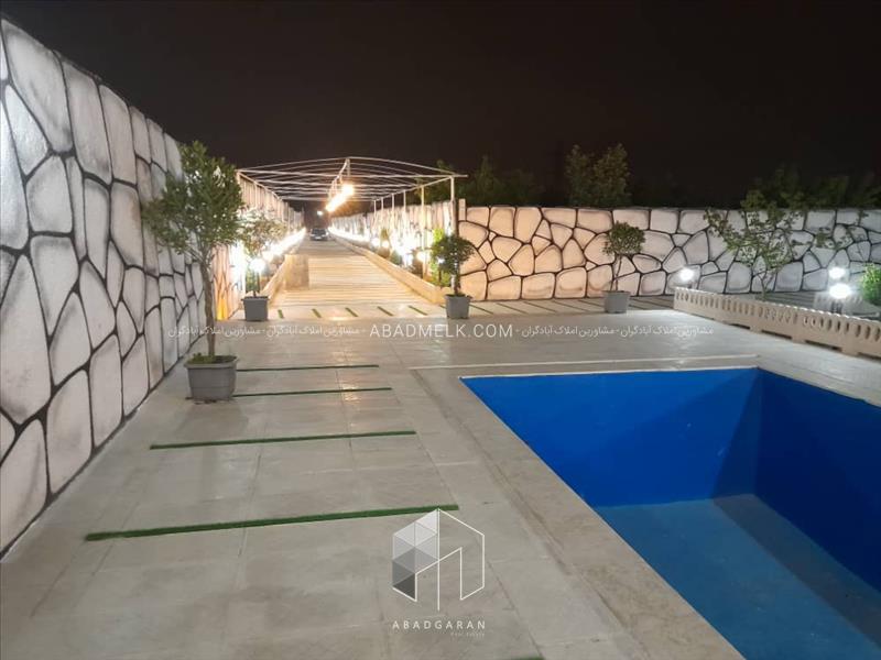 1370 متر باغ ویلا در دهشاد پایین شهریار 80 متر بنا استخر شنا درختان مثمر نورپردازی و گل کاری سهمیه آب کشاورزی انشعابات چاه آب ، برق مصرفی در موقعیت نصب انشعاب گاز واگذاری ملک بصورت وکالت از سند اوقاف
