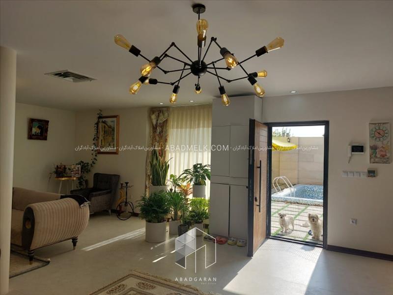 450 متر باغ با انواع درختان میوه مثمر 170 متر ویلا ، دو خوابه انشعابات آب ، برق و گاز قانونی استخرشنا با تصفیه خانه داخل مجموعه با امنیت بالا مناسب جهت سکونت دایم واگذاری ملک بصورت سند تک برگ