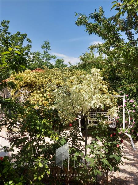 باغی پر از گلهای زیبا و معطر و رنگارنگ همراه با درختان قدیمی و بارده گردو- بادام- پسته- فندق گیلاس- آلبالو-هلو- زردآلو- گوجه سبز- سیب-خرمالو- انگور- شلیل- آلو سیاه- آلو قرمز- شاتوت- توت- انجیر دارای استخر- باربیکیو- تاب- مبل شش نفره باغی کاملا مبله همراه با یخچال و گاز و کولر و بخاری گازی و برقی- کرسی همراه با لحاف نزدیک به خیابان اصلی با دسترسی راحت به سوپر مارکت و نانوایی و میوه فروشی دسترسی آسان به درمانگاه و داروخانه شبانه روزی در محیطی امن و خانوادگی