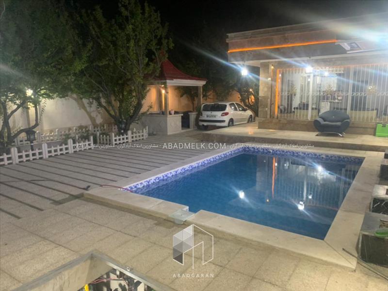 300 متر باغ با انواع درختان میوه مثمر دوربین مداربسته 60 متر ویلا ، یک خوابه انشعابات آب ، برق و گاز مصرفی استخرشنا مجهز به تصفیه خانه و آبگرم سهمیه آب کشاورزی جهت آبیاری درختان واگذاری ملک بصورت قولنامه از سند مادر
