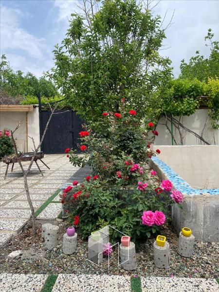 600 متر باغ با انواع درختان میوه مثمر 55 متر ویلا ، یک خوابه محوطه سازی ، گل کاری و نورپردازی انشعابات آب قانونی ، برق و گاز مصرفی استخرشنا سهمیه آب کشاورزی جهت آبیاری درختان واگذاری ملک بصورت بنچاق و قولنامه از سند مادر