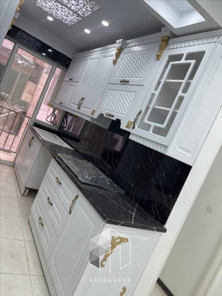 متراژ ۴۶/۸۱ یک خواب تخت خور طبقه سوم با آسانسور کمد دیواری پارکینگ اختصاصی کابینت ممبران پکیج رادیاتور کولر گازی گاز رو میزی و هود لوستر کناف و نورپردازی انباری سندی