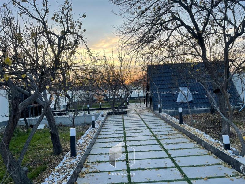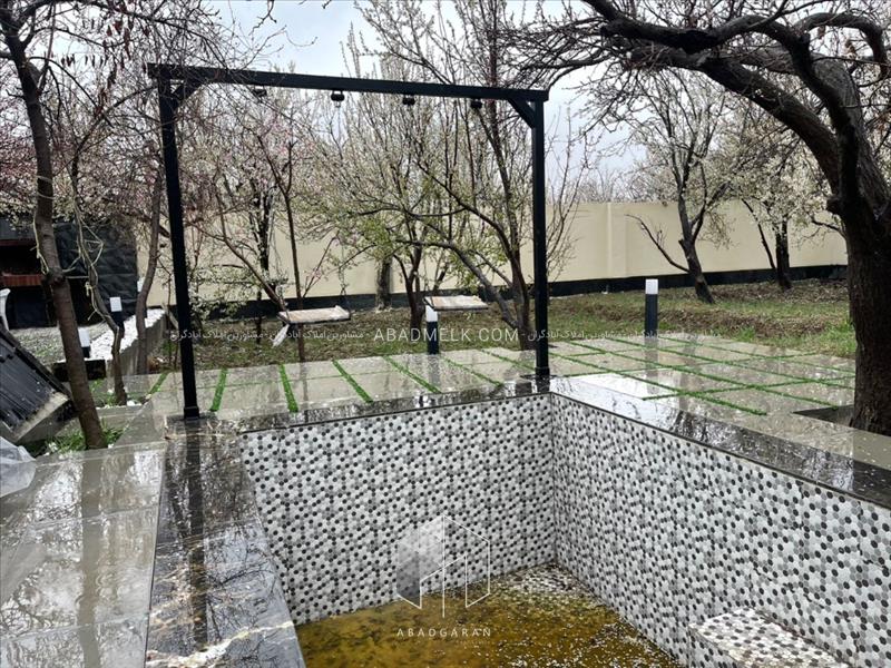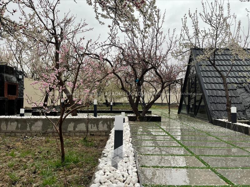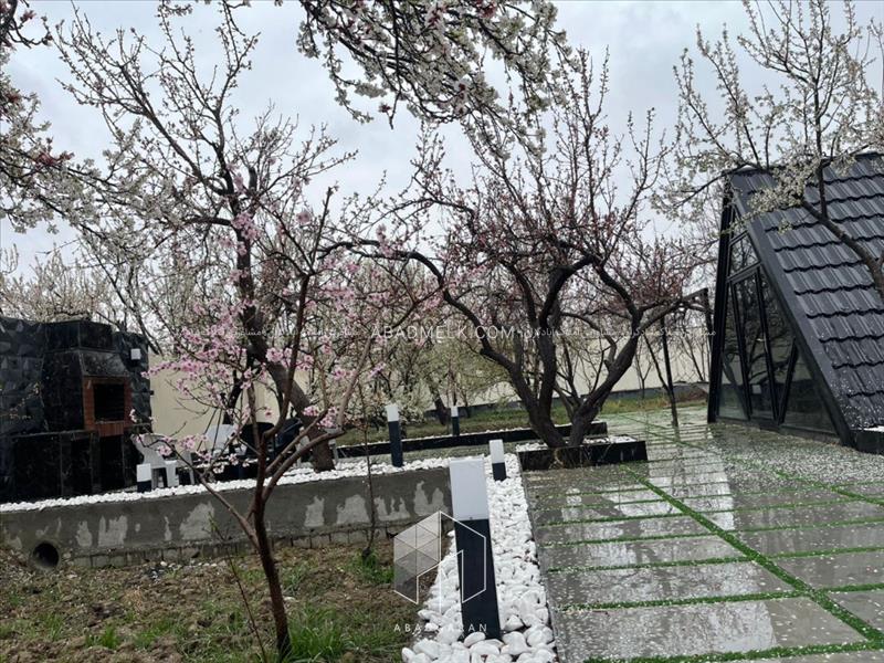 750 متر باغ چهاردیواری با انواع درختان میوه مثمر 50 متر ویلا سوییسی استخرشنا محوطه سازی و گل کاری شده انشعابات آب ، برق و گاز مصرفی سهمیه آب کشاوری جهت آبیاری درختان واگذاری ملک به صورت سند تک برگ عرصه و اعیان