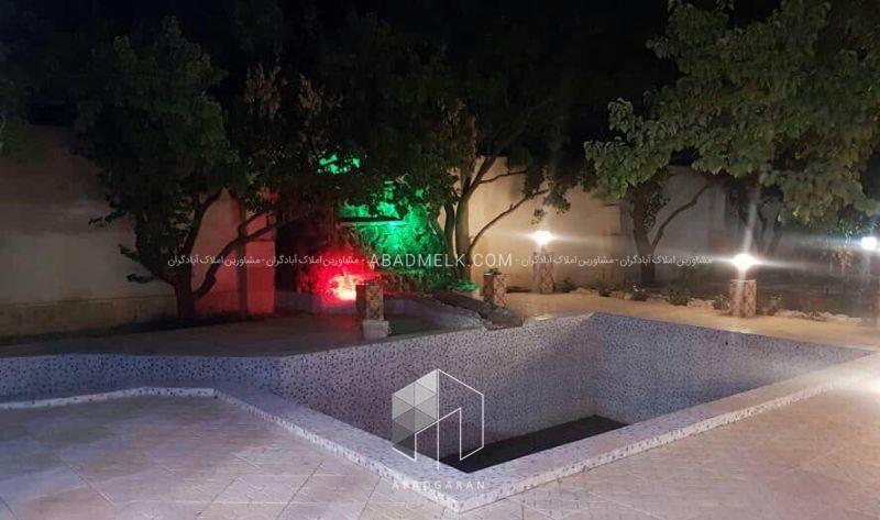 آبنما سنگی ، استخرشنا کاشی کاری شده مجهز به سیستم تصفیه خانه و آبگرم ، گل کاری ، نورپردازی حرفه ای محوطه باغ و نمای ویلا و انواع درختان میوه مثمر از جمله امکانات بکار رفته در محوطه سازی باغ می باشد ، همچنین لازم به ذکر است که 30 متر سرایداری مجزا جهت سکونت باغبان در باغ احداث شده است