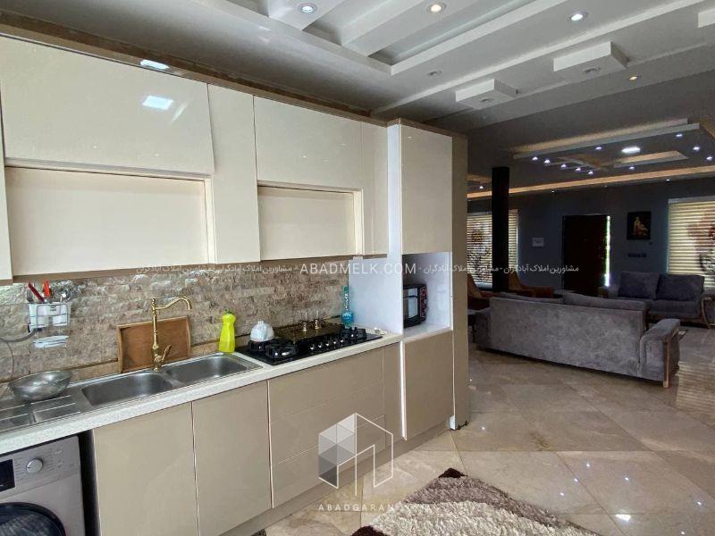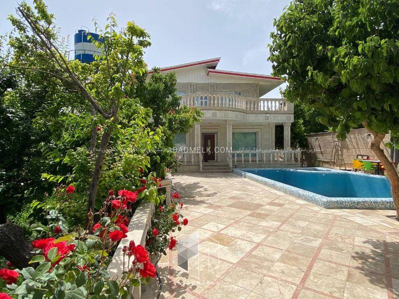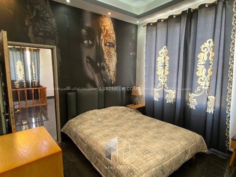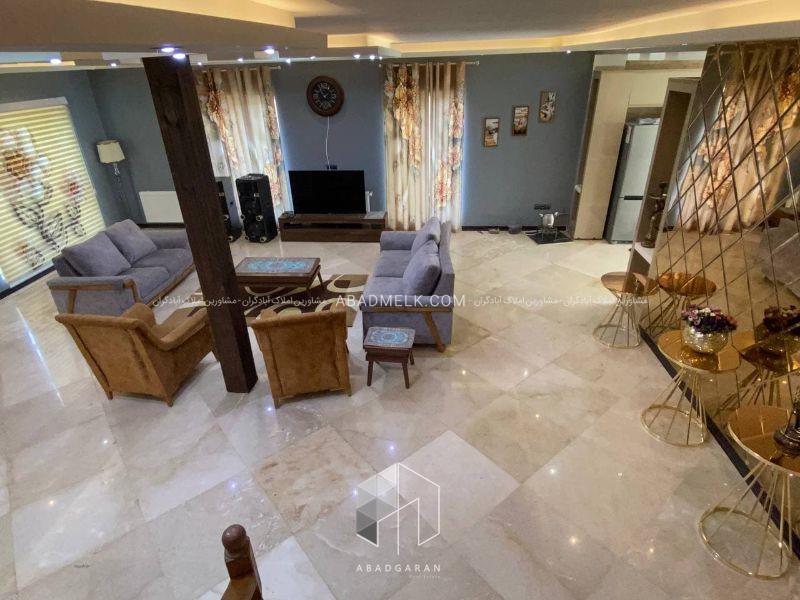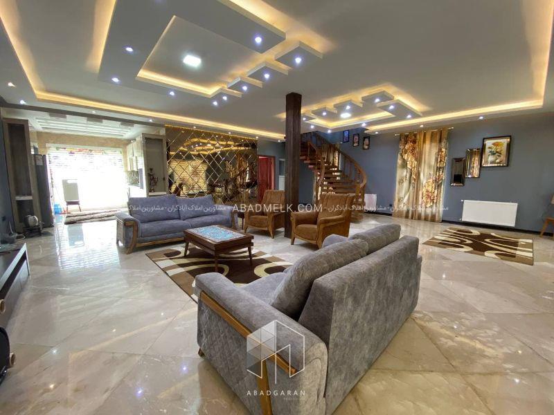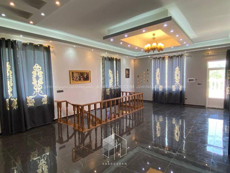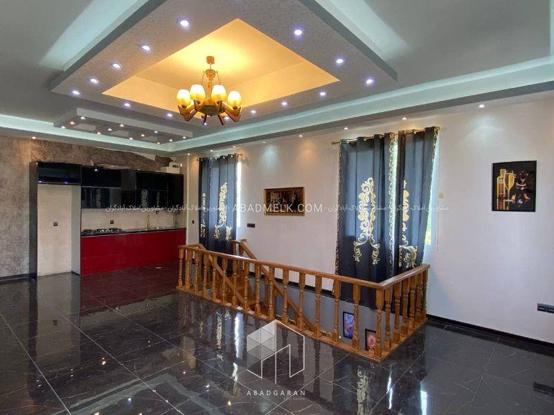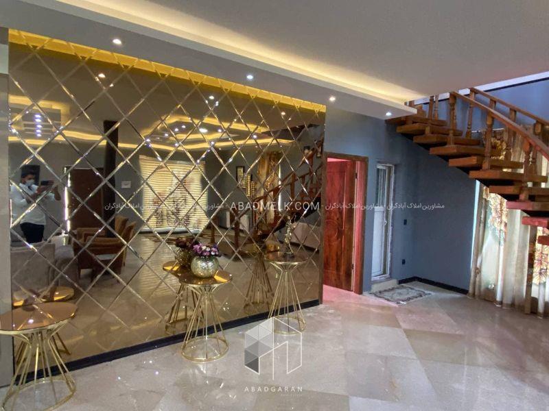 350 متر ویلای لوکس بصورت سه خواب مستر که در نمای آن از سنگ استفاده شده ، همچنین دارای تراس با منظره فوق العاده رو به محوطه باغ ویلا است و در طراحی داخلی ویلا از آینه کاری جهت دیزاین دیوارها ، مبلمان ، پوستر سه بعدی و کنافکاری و نورپردازی بی نظیر استفاده شده است ؛ ملک مورد نظر همچنین دارای 30 متر سرایداری مجزا جهت سکونت نگهبان می باشد .