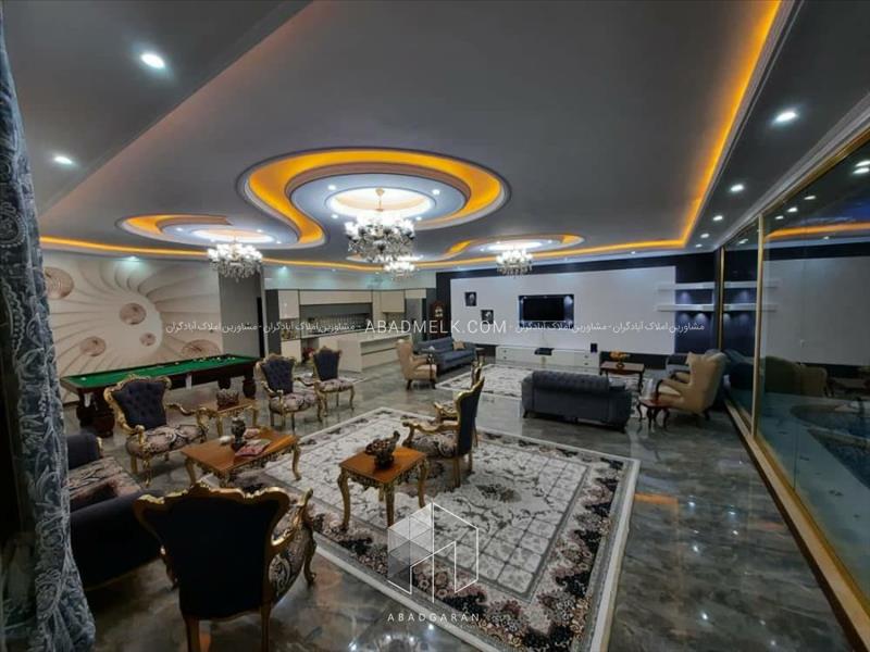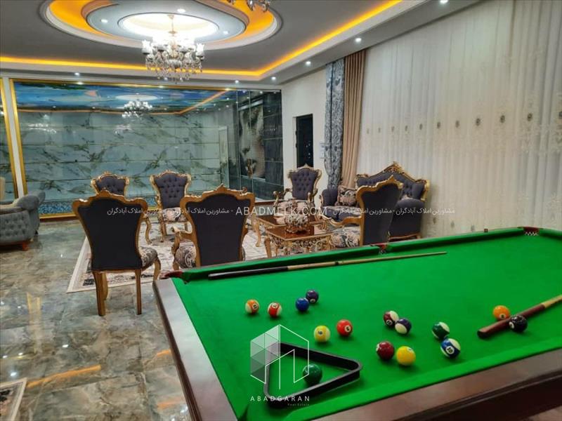 باغ ویلایی که مشاهده می کنید دارای 320 متر ویلا لاکچری می باشد که فضای داخلی آن به زیباترین شکل و با بهترین امکانات دیزاین شده است از جمله این امکانات می توان به مبلمان ، تجهیزات آشپزخانه ( کابینت MDF ، گاز رومیزی ، هود لمسی و یخچال ) ، کف پوش گرانیتی ، کاغذ دیواری ، کنافکاری و نورپردازی ، استخرشنا کاشی کاری شده مجهز به سیستم تصفیه خانه و میز بیلیارد اشاره کرد .