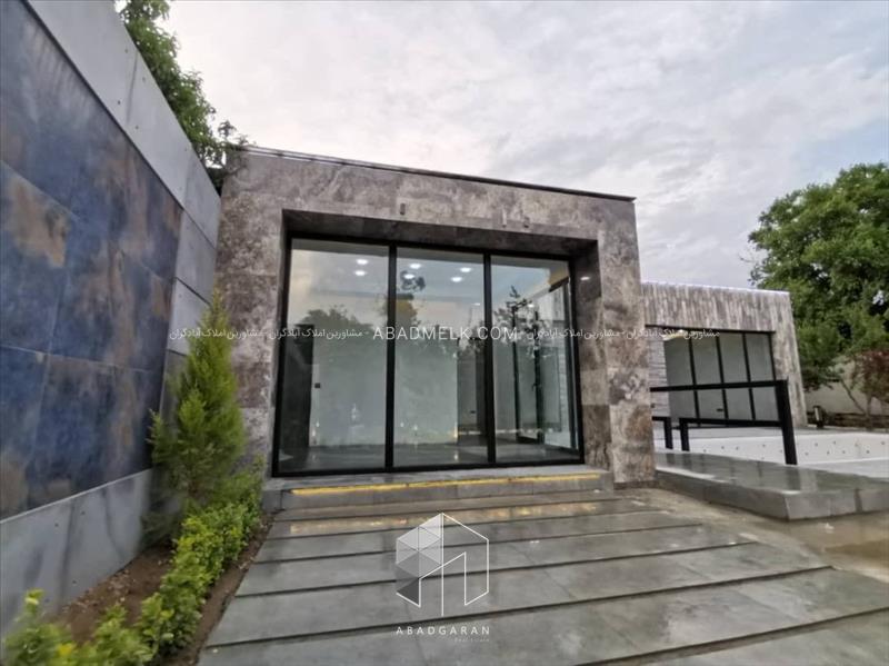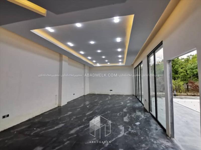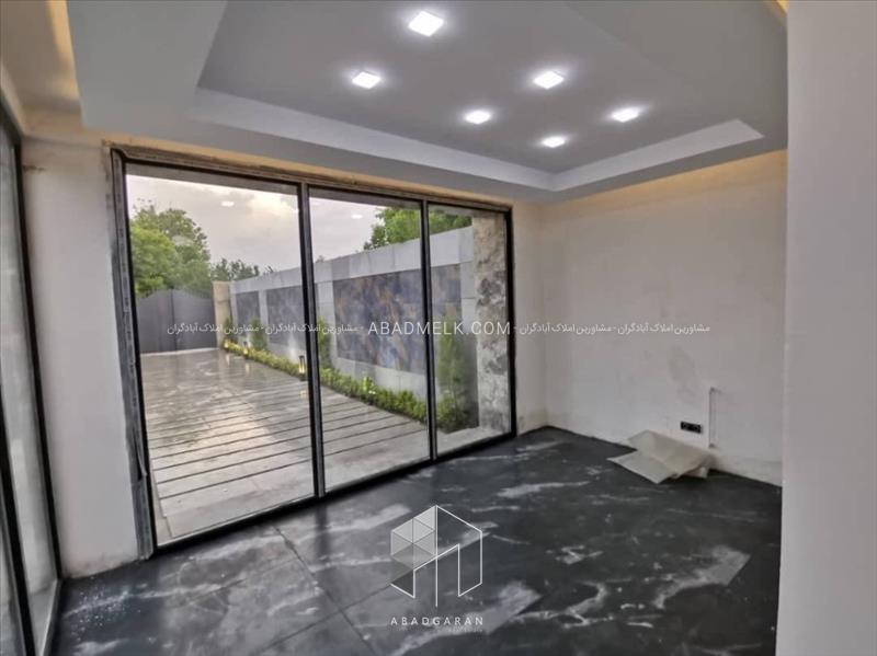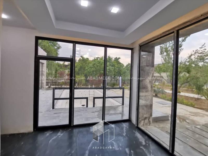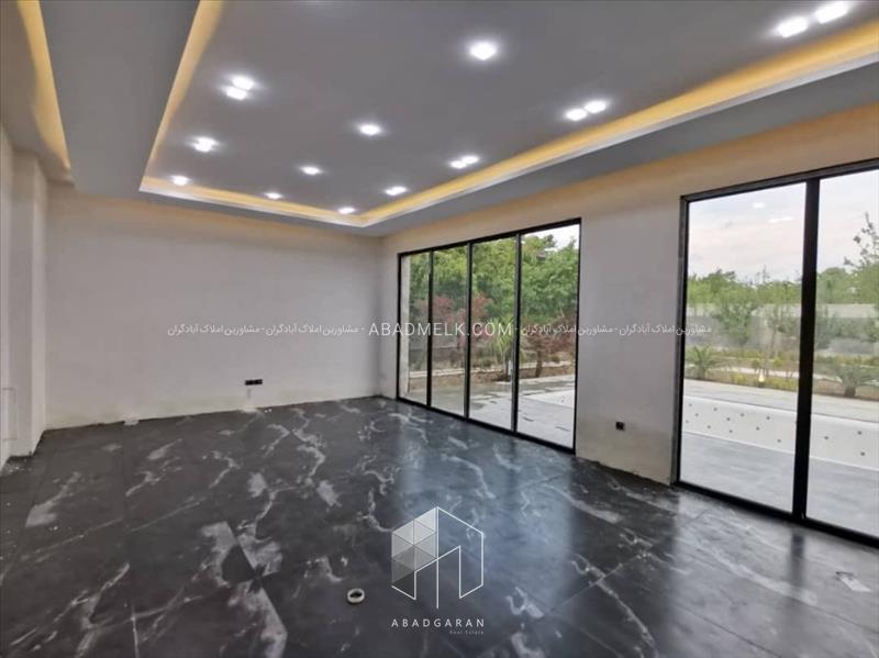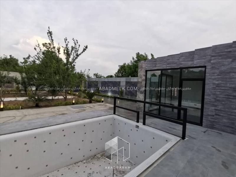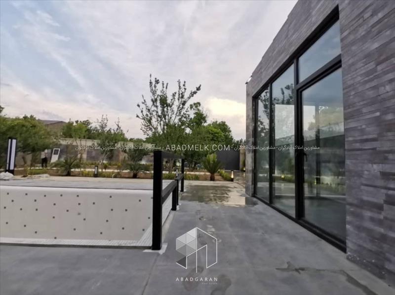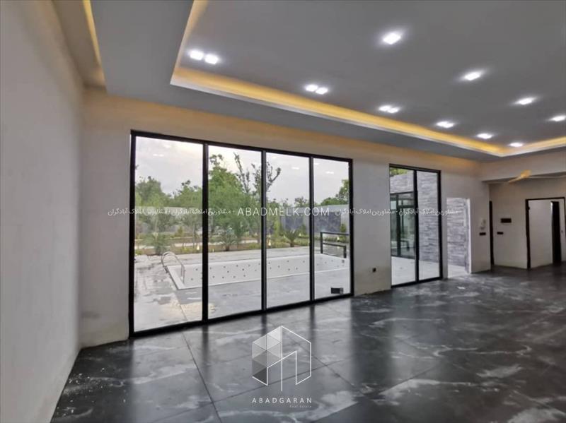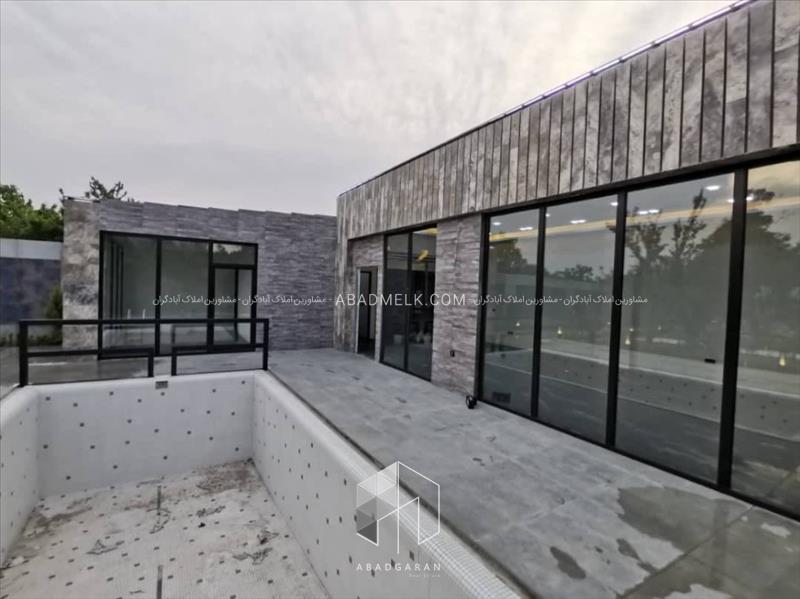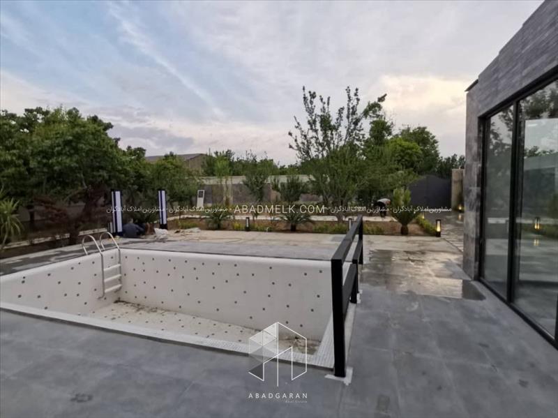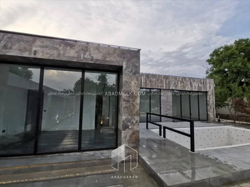 100 متر ویلا مجهز به پنجره های بزرگ با ویو استخر و محوطه باغ