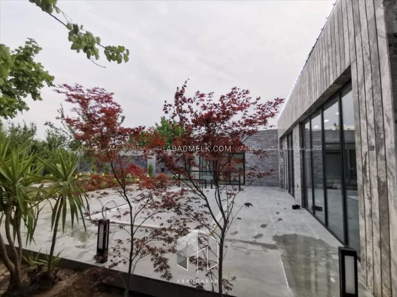 706 متر باغ نوساز و مدرن با ترکیبی از رنگ های طوسی و سفید