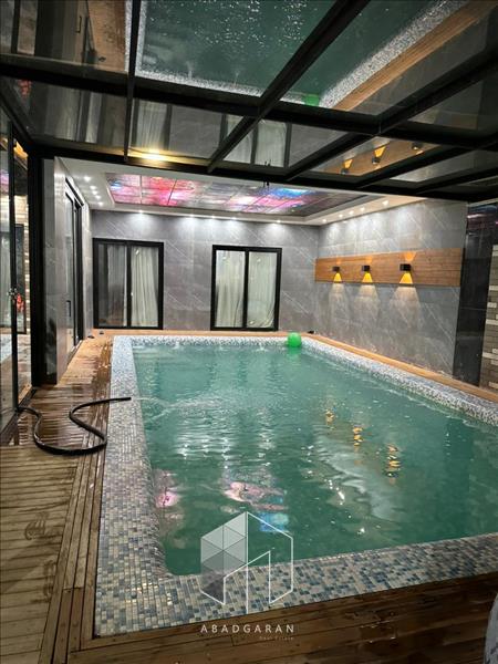استخر شنا کاشی کاری شده سرپوشیده به همراه تصفیه خانه و آبگرم در مجاورت ویلا جایگذاری شده و یکی از امکانات رفاهی واقع در محوطه باغ ویلا می باشد .