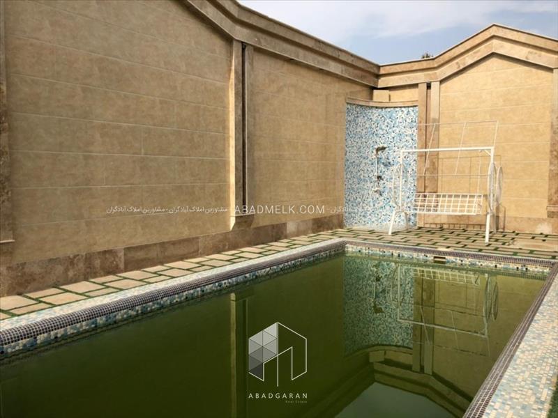 استخر شنا کاشی کاری شده به همراه تصفیه خانه ، آلاچیق و کف پوش واش بتن و چمن از جمله امکانات بکار رفته شده در محوطه باغ ویلا می باشد که در کنار نورپردازی ، گل کاری و انواع درختان مثمر سبب زیبایی بیشتر باغ شده است .