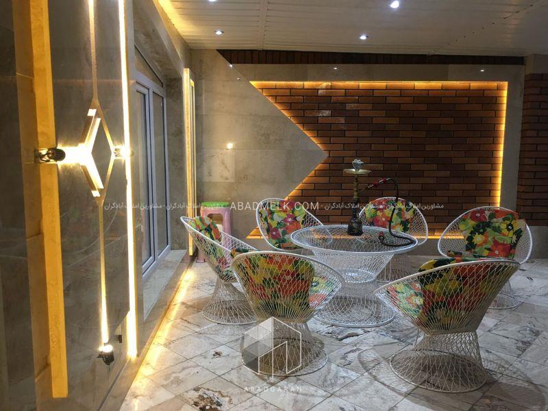 فضای باغ بسیار زیبا محوطه سازی ، نورپردازی و گل کاری شده