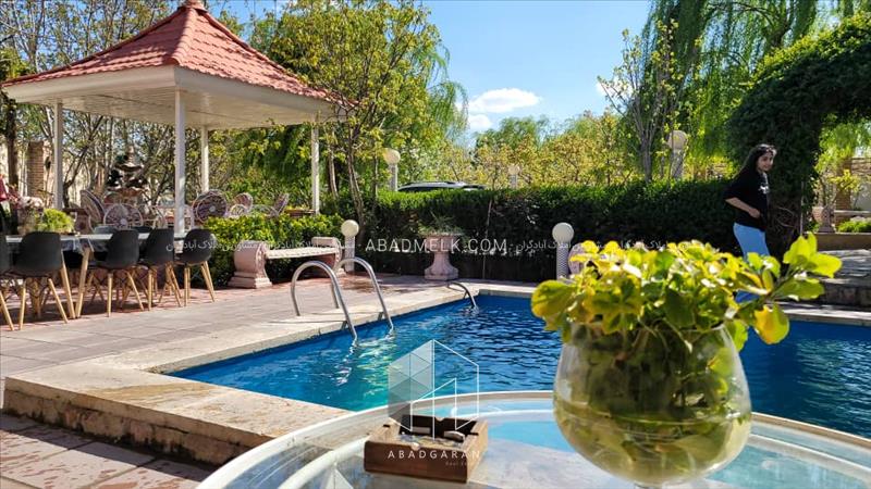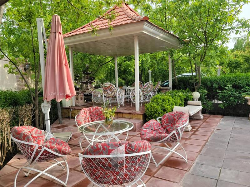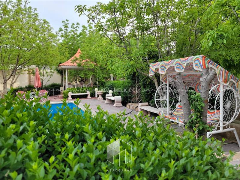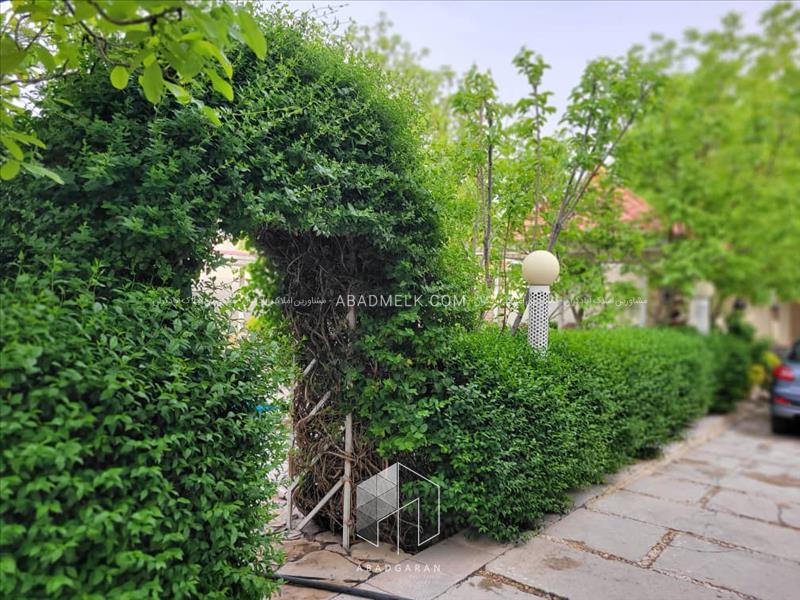 در محوطه باغ ویلا از انواع درختان مثمر و تزئینی در کنار نورپردازی حرفه ای و گل کاری استفاده شده است و امکاتانی از قبیل آلاچیق ، استخر شنا کاشی کاری شده به همراه تصفیه خانه ، باربیکیو ، مجسمه سنگی و آبنما در باغ بکار رفته است .