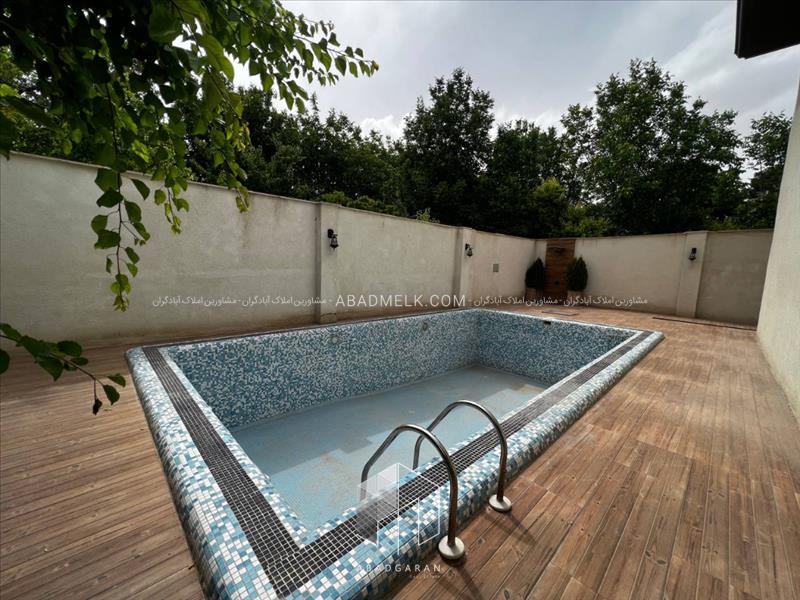 در محوطه باغ ویلا از انواع درختان مثمر ، گل های زینتی ، نورپردازی ، باربیکیو ، استخر شنا چهارفصل کاشی کاری شده به همراه تصفیه خانه استفاده شده است .