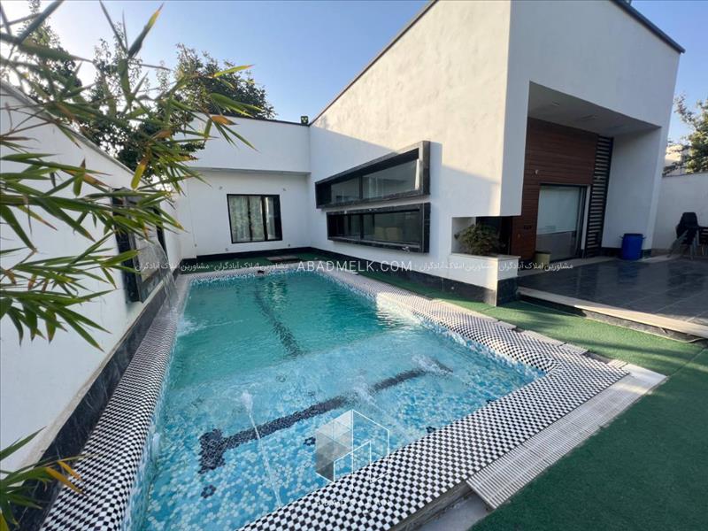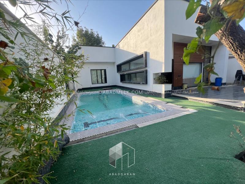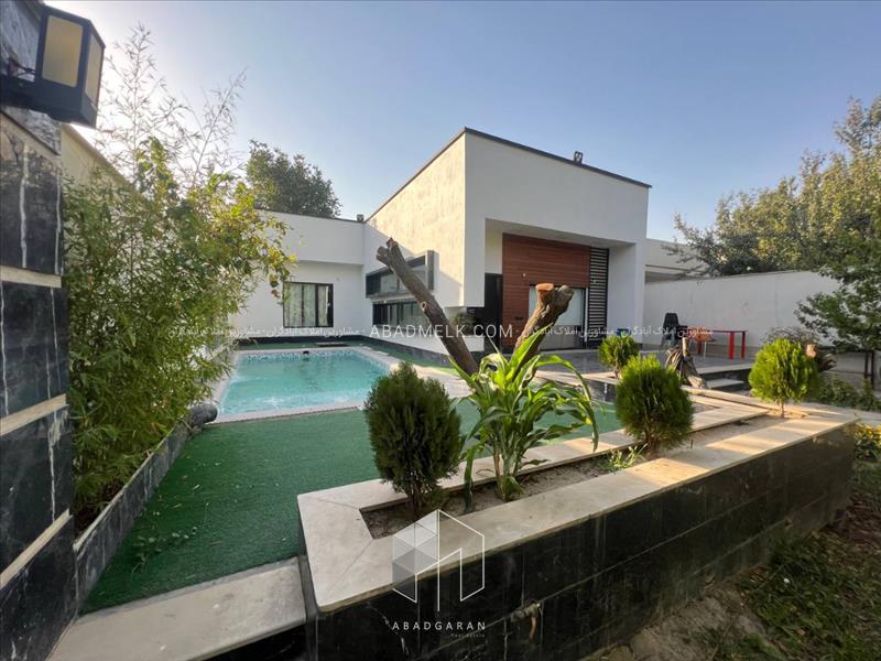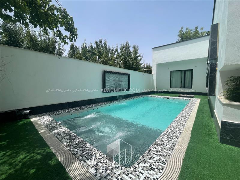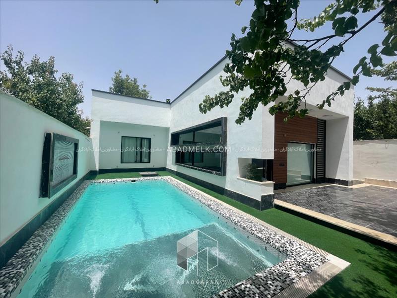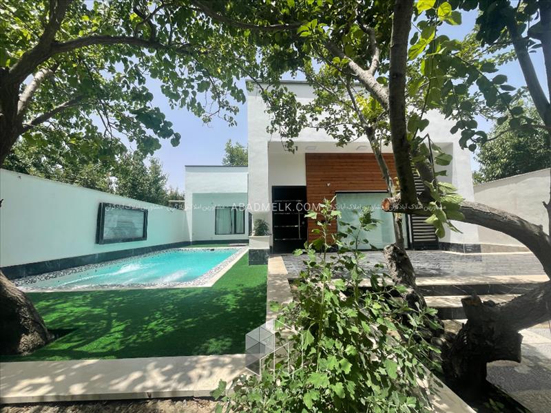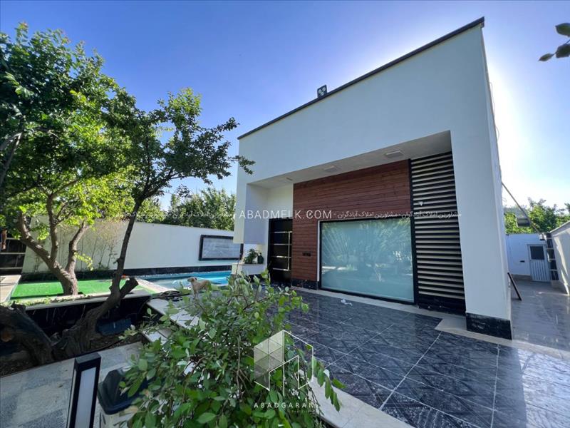 فروش باغ ویلا در لم آباد ملارد با متراژ 700 متر به همراه 130 متر ویلا مدرن دو خوابه که نمای ویلا به سبک معماری مینیمال طراحی شده است .