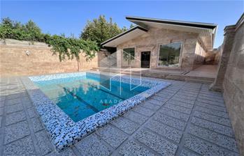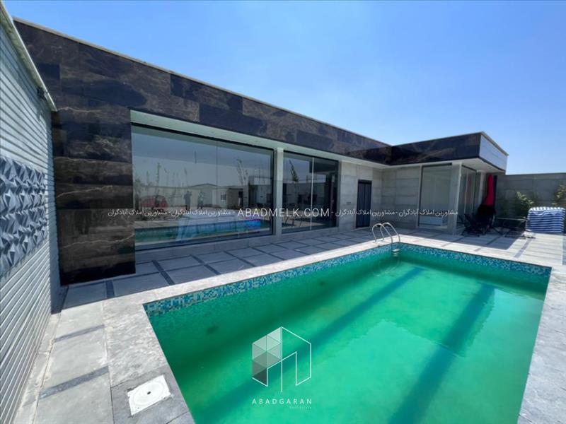 استخر شنا کاشی کاری شده به همراه تصفیه خانه این باغ ویلا در روبروی ویلا جایگذاری شده و بصورت خیره کننده ای نورپردازی شده است .