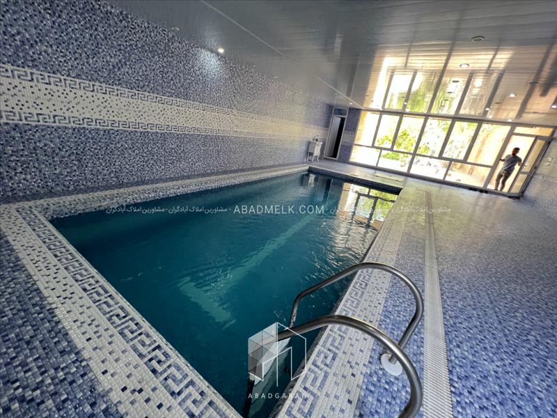 استخر شنا چهارفصل و کاشی کاری شده به همراه تصفیه خانه این باغ ویلا در ساختمان ویلا جایگذاری شده است .