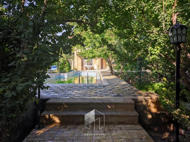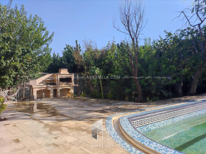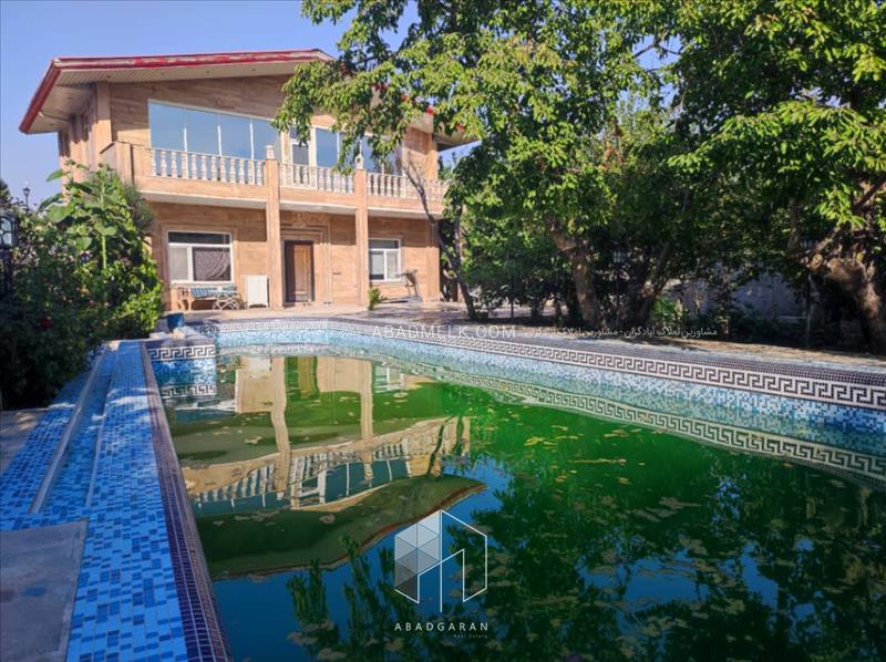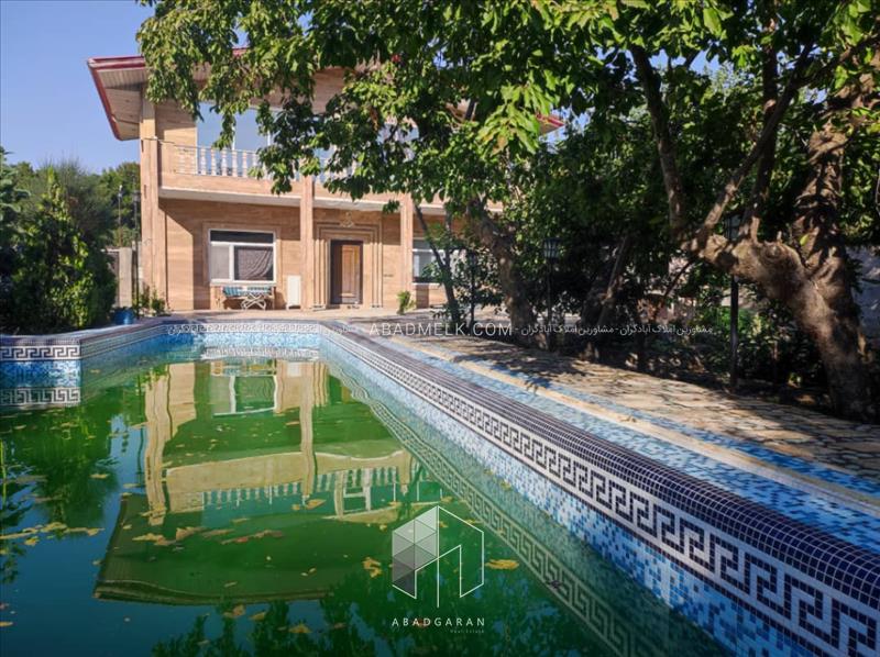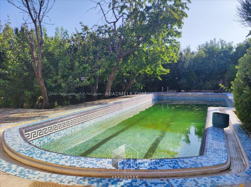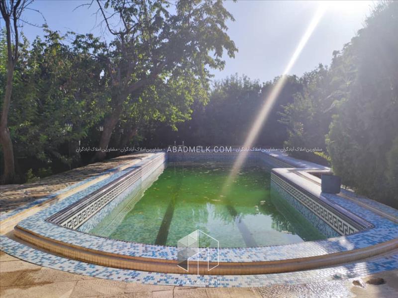 استخرشنا کاشی کاری شده به همراه تصفیه خانه این باغ ویلا در روبروی ویلا جایگذاری شده است .
