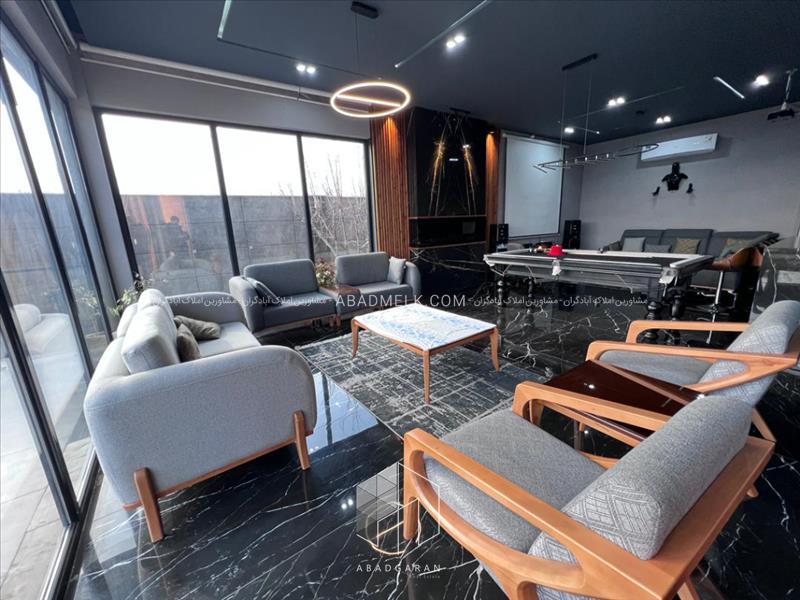 در فضای این باغ ویلا استخر شنا چهارفصل کاشی کاری شده به همراه تصفیه خانه ، آلاچیق و آتشکده تهیه شده است .
