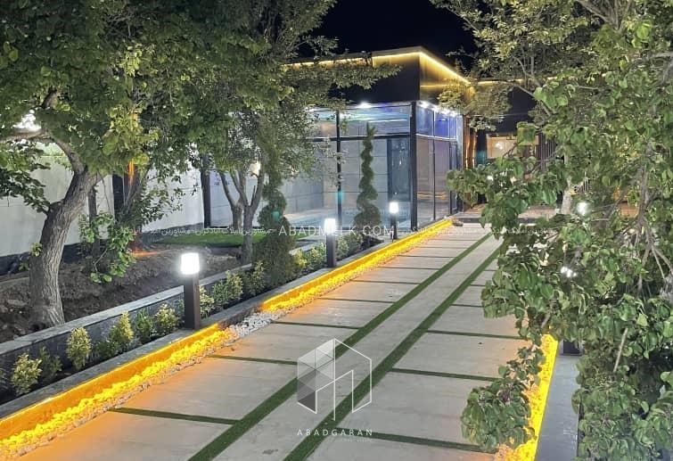 محوطه سازی زیبا ، گل کاری بی نظیر و نورپردازی