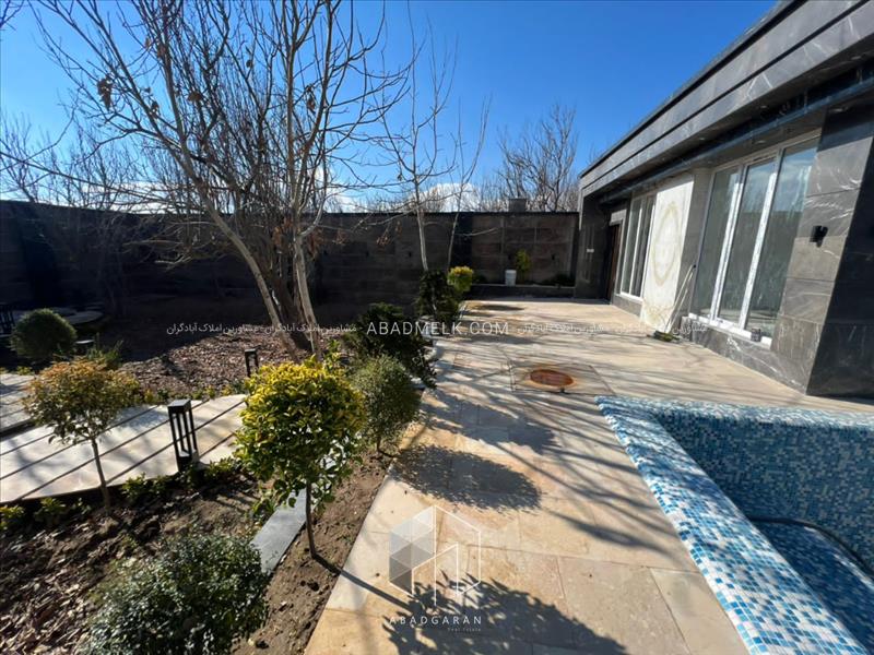 استخر شنا همراه با تصفیه خانه در محوطه باغ ویلا در مجاورت ویلا جایگذاری شده است ؛ واگذاری ملک بصورت سند تک برگ عرصه و اعیان انجام می شود .
