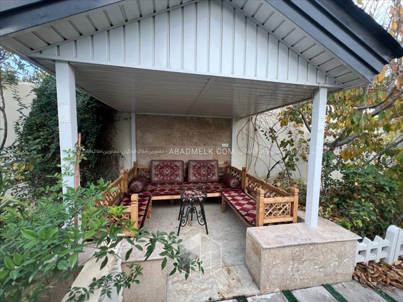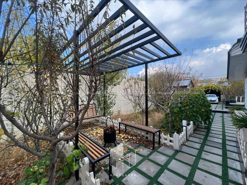 در فضای بیرونی این باغ ویلا سه آلاچیق در کنار استخر شنا چهارفصل جایگذاری شده که در کنار گل کاری و نور پردازی محوطه سبب جلوه بیشتر و زیبایی دوچندان محوطه بیرونی این باغ ویلا شده است .