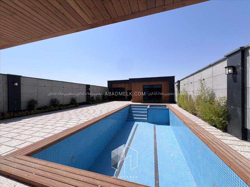 این ویلای ۱۳۰ متری با ۷۵ متر ویلای مهمان مجزا در زمینی به مساحت ۷۵۰ متر و با درختان زینتی ، نورپردازی و گل کاری بسیار شیک واقع شده است. این ویلا دارای دو خواب مستر، گلخانه پاستو ( حیات خلوت ) و یک استخر شنا کاشی کاری شده با تصفیه خانه و آلاچیق با چوب ترمو طراحی شده است. همچنین، فضای باربیکیو با نشیمن بسیار زیبا ، کمددیواری ، کابینت‌های مدرن و انشعابات برق ، آب و گاز مصرفی از دیگر امکانات این ویلاست. حیاط ویلا فضایی دلنشین و مناسب برای استراحت و تفریح دارد. مستندات این باغ ویلا سند تک برگی با انتقال قطعی در دفترخانه با نام خریدار می باشد .