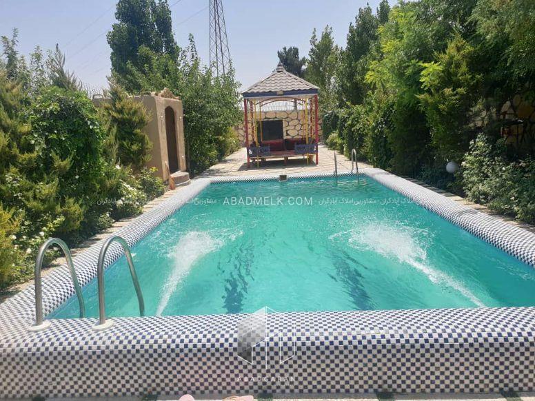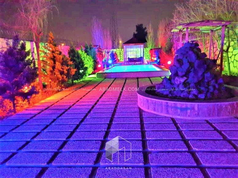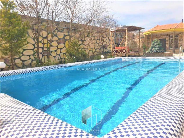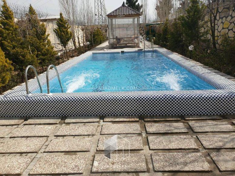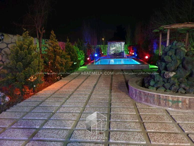 560 متر باغ با درختان میوه مثمر 90 متر ویلای لوکس ، یک خوابه مبله و کابینت شده محوطه سازی ، گل کاری و نورپردازی آلاچیق ، باربیکیو استخرشنای کاشی کاری شده مجهز به تصفیه خانه و آبگرم