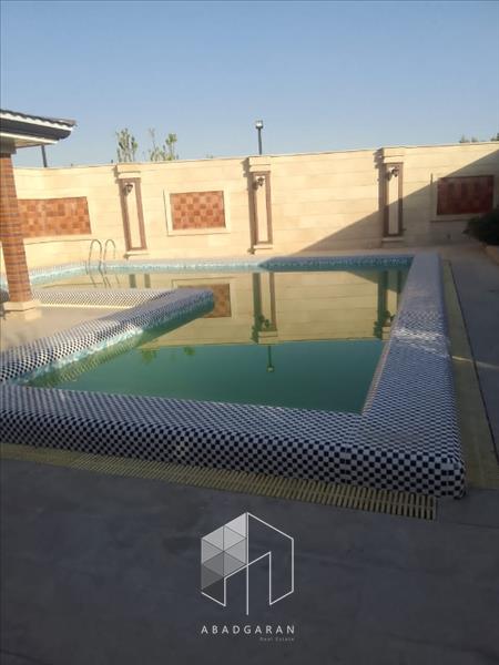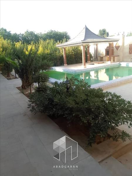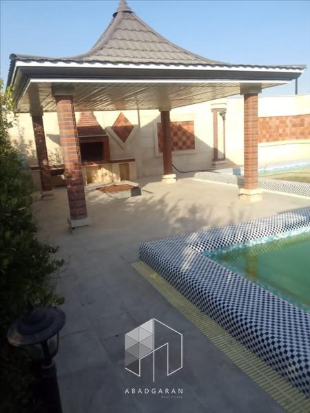 1370 متر باغ ویلا در دهمویز شهریار 180 متر ویلا دوخوابه کابینت شده پکیج و اسپیلت سرویس بهداشتی ایرانی و فرنگی آلاچیق باربیکیو استخر شنا کاشی کاری شده به همراه تصفیه خانه آتشکده نورپردازی 15 نوع درختان میوه انشعابات آب ، برق و گاز با کنتور قانونی سند مالکیت تک برگ عرصه و اعیان