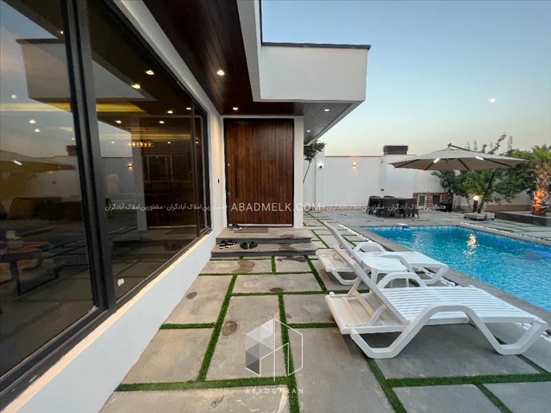 فروش ۶٣۶ متر باغ ویلا مدرن در لم آباد ١٣٢ متر ویلا فول فرنیش دو خوابه سند تک برگ عرصه و اعیان استخر با تجهیزات کامل بدون مشکل جهاد و شهرداری انشعابات کامل آب و برق و گاز زیر قیمت منطقه برای اطلاعات بیشتر تماس بگیرید