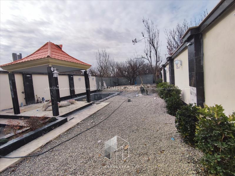 350 متر چهار دیواری دارای آلاچیق و استخر بتنی سند تک برگ عرصه و اعیان جای بنا مشخص شده آماده برای ویلا سازی