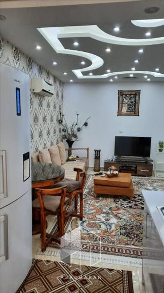 متراژ ۴۸/۷۴ یک خواب تخت خور خوش نقشه طبقه دوم پارکینگ اختصاصی کابینت هایگلاس کولر گازی گاز رو میزی و هود لوستر کناف و نورپردازی انباری سندی تخلیه