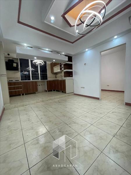 ۴۸ متر یک خواب نورگیر سالن مربع و قابل چیدمان نما تراورتن کابینت mdf افتابگیر پارکینگ با جای پارک مشخص