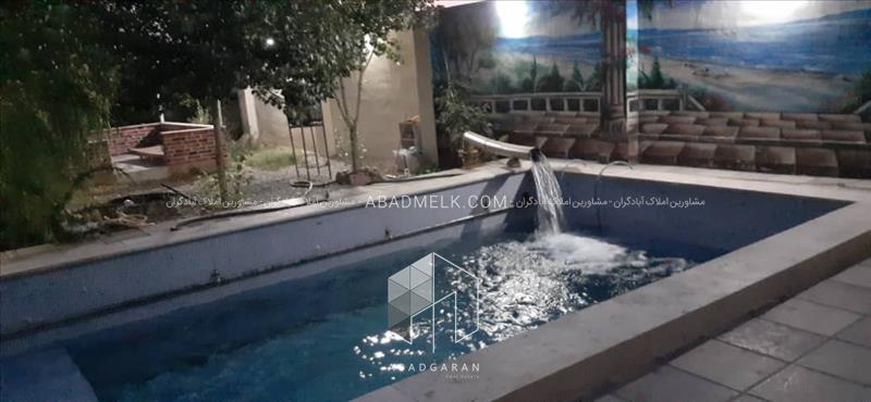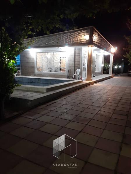 1000 متر باغ با انواع درختان میوه مثمر 70 متر ویلا ، یک خوابه انشعابات آب ، برق و گاز مصرفی استخرشنا سهمیه آب کشاورزی جهت آبیاری درختان واگذاری ملک به صورت سند تک برگ عرصه و اعیان