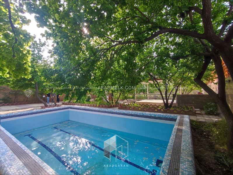 1000 متر باغ با انواع درختان میوه مثمر انشعابات آب ، برق و گاز مشترک آلاچیق و استخرشنا سهمیه آب کشاورزی جهت آبیاری درختان واگذاری ملک به صورت سند تک برگ