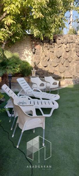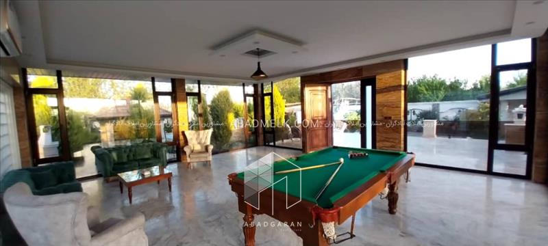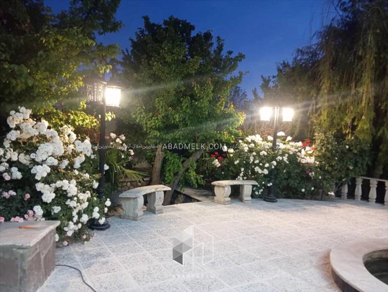 ۲۳۱۷ متر باغ. ۵۰۰ متر مجموع کل بناها. سرایداری با حیاط مجزا. سه عدد آبنما . برکه. دو عدد باربیکیو. استخر چهارفصل با تسویه. آلاچیق تابستانی و زمستانی. درختان زینتی و درختان میوه. محوطه سازی. سرویس بهداشتی محوطه فول. آتشکده. برق سه فاز ۵۰ آمپر. برق تک فاز ۳۲ آمپر. گاز. آب. ۳ خط تلفن. ۲ساعت سهمیه آب ریشه ای. سند شش دانگ تکبرگ عرصه و اعیان
