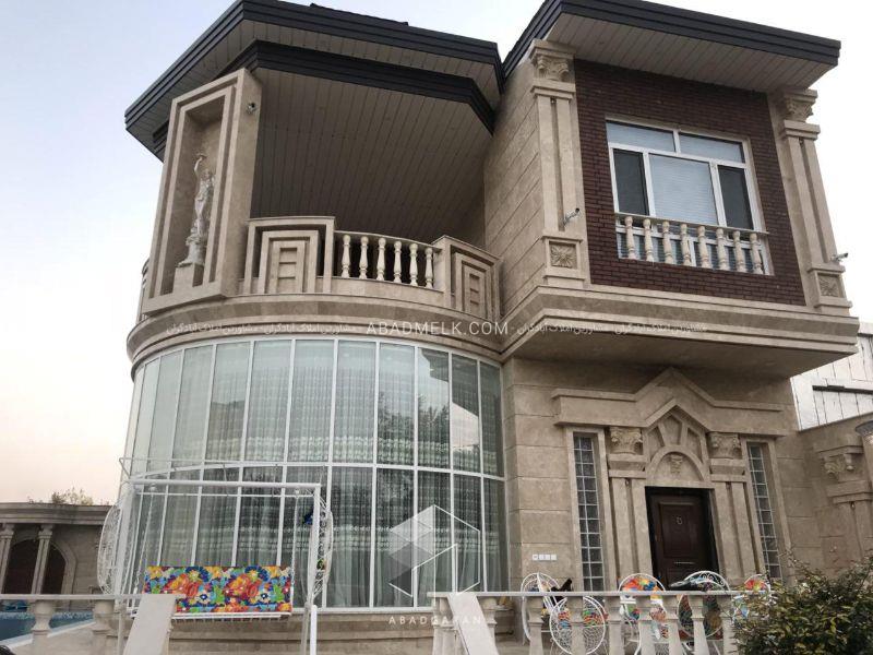 فروش باغ ویلا 1000 متری در تیسفون شهریار به همراه 380 متر ویلا لوکس دوبلکس با نمای تلفیقی از شیشه و سنگ ، دارای منظره عالی روبه محوطه باغ و استخر ، همچنین داخل ویلا امکانات رفاهی از قبیل مبلمان ، کابینت MDF ، نورپردازی و کنافکاری و تمامی امکانات آشپز خانه نظیر ( ماشین لباس شویی ، ماشین ظرف شویی ، یخچال ، گاز رومیزی و هود لمسی ) بکار رفته است .