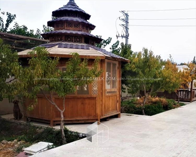 آلاچیق چوبی ، باربیکیو و آبنما سنگی