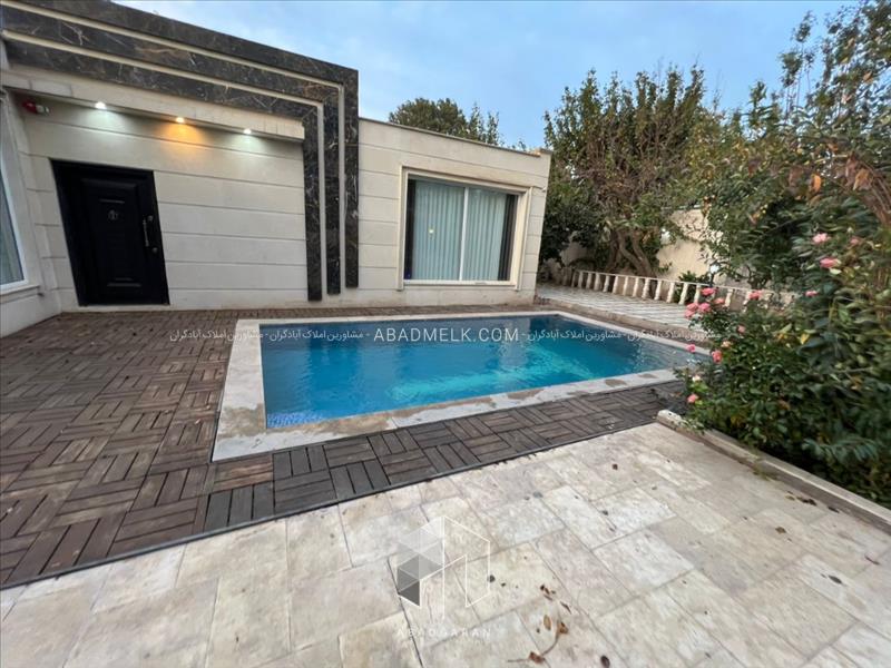 محوطه این باغ ویلا شهرکی که در متراژ 500 متر بصورت نقلی طراحی شده بصورت کامل نورپردازی شده و استخر شنا چهارفصل به همراه آلاچیق چوبی و باربیکیو در کنار درختان مثمر و تزئینی بکار رفته تعبیه شده اند .