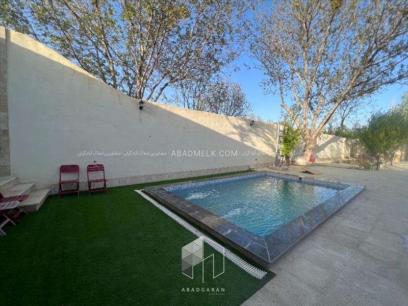 در محوطه باغ یک استخرشنا چهارفصل کاشی کاری شده به همراه تصفیه خانه تهیه شده به سبک مدرن ، انشعابات آب ، برق و گاز مصرفی واگذاری ملک به صورت قولنامه از سند مادر عرصه و اعیان