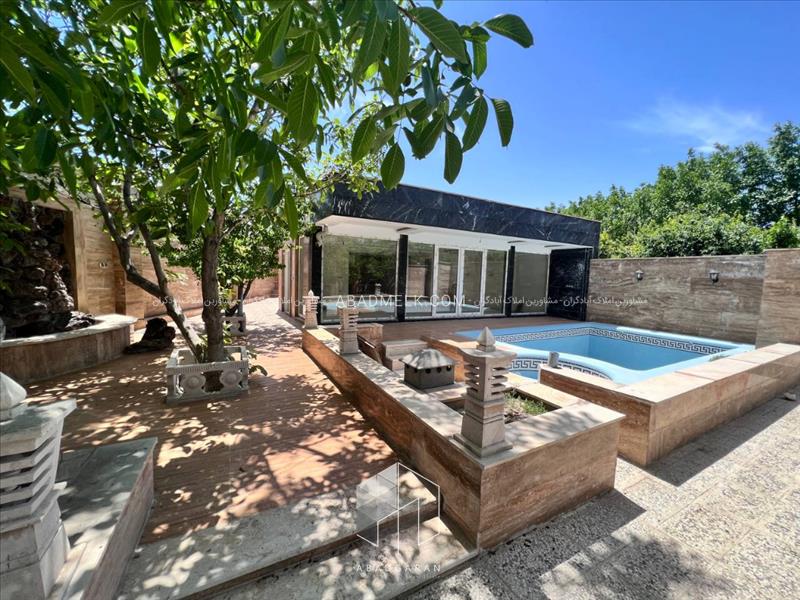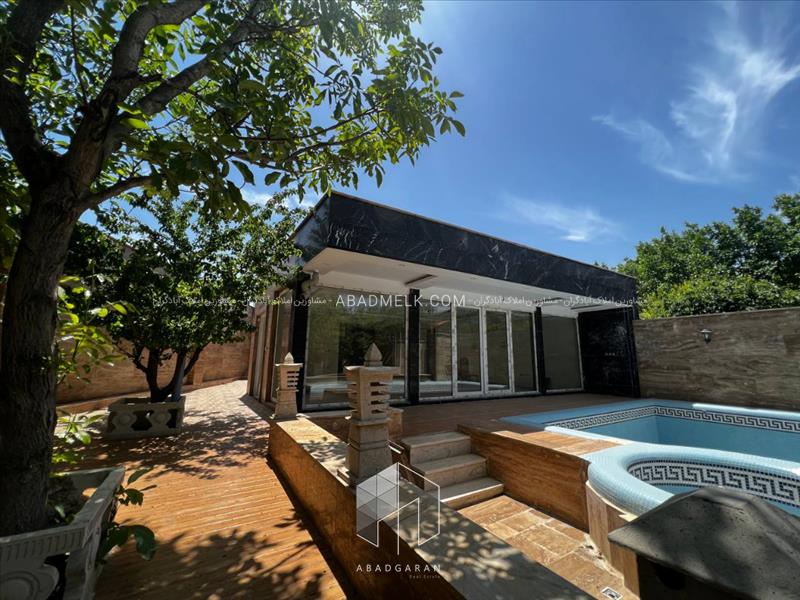 فروش باغ ویلا نقلی در مهرآذین ملارد به متراژ 450 متر به همراه 100 متر ویلا دو خوابه که با سبک معماری مینیمال طراحی شده است .