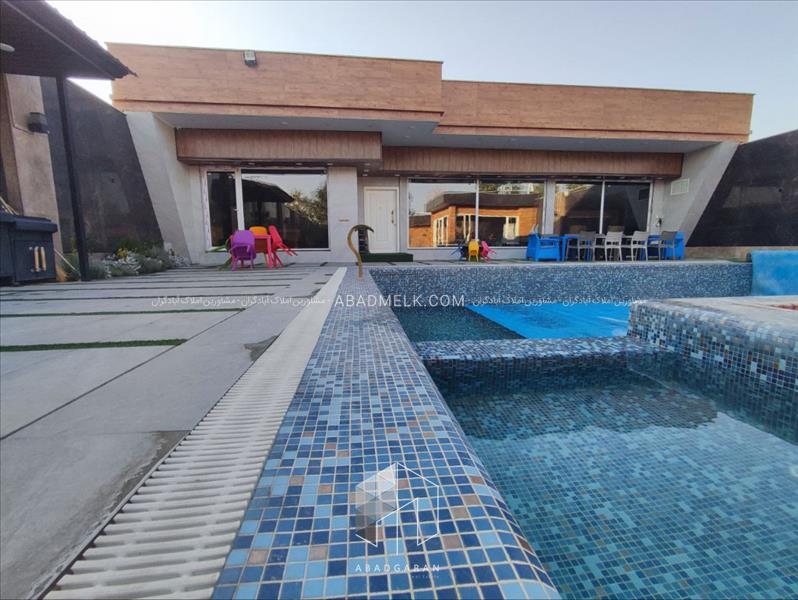 جهت کف پوش محوطه باغ ویلا از تلفیق واش بتن و چمن استفاده شده است و از دیگر امکانات بکار رفته در محوطه باغ میتوان به استخر شنا چهارفصل کاشی کاری شده به همراه تصفیه خانه ، باربیکیو ، نورپرداری خیره کننده در شب اشاره کرد .