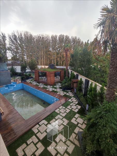 این ملک بی نظیر از درختان مثمر و کهنسال محصور شده است و در محوطه این باغ ویلای مدرن استخری با ابعاد بزرگ مشاهده می کنید که مجهز به سبستم تصفیه خانه می باشد و در مجاورت استخر فضای نشیمن آتشکده که بسیار دلنشین می باشد قرار دارد با نورپردازی حرفه ای که به زیبایی این باغ ویلا مدرن افزوده است .